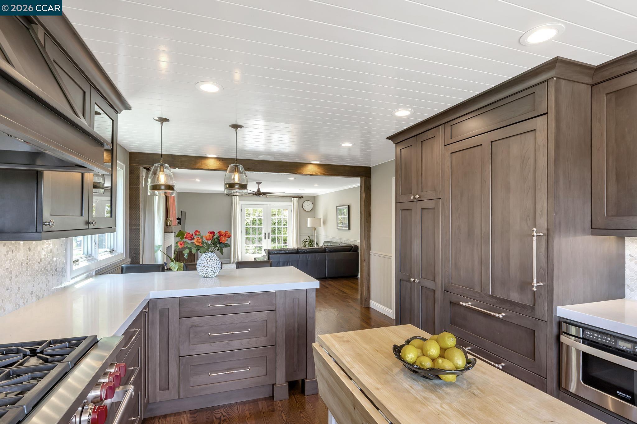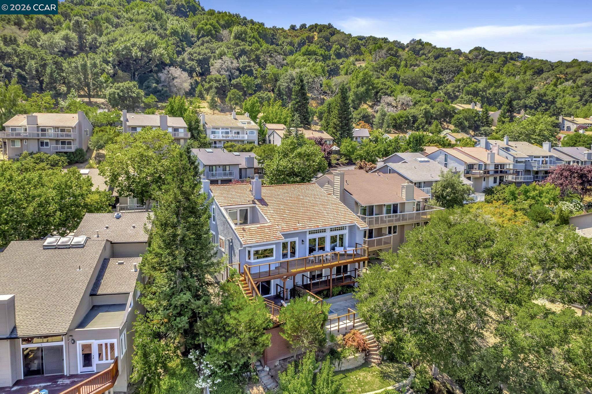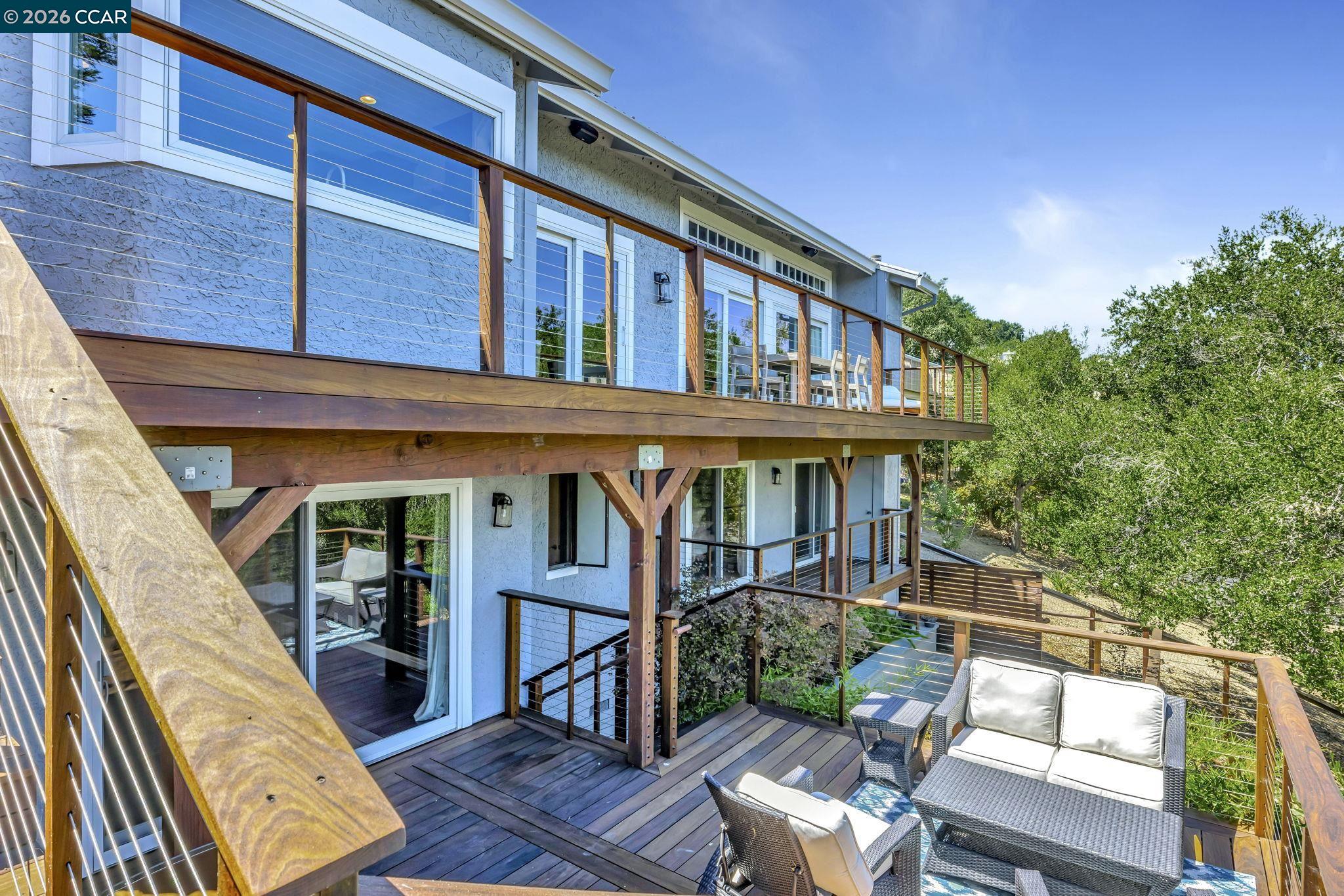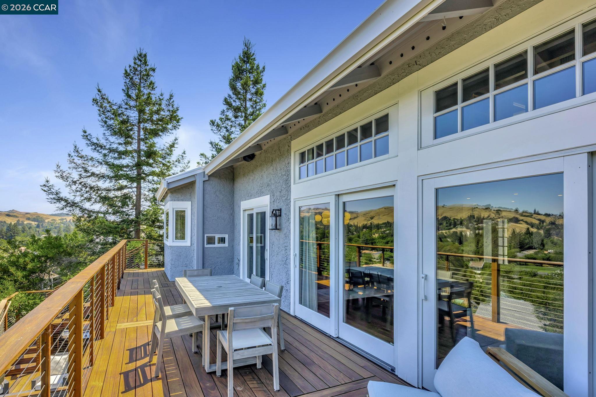 Luxury Living with Immediate Country Club Access & Sweeping Views! Start enjoying the Moraga Country Club lifestyle right away -- this home offers immediate club access with no $75,000 initiation fee and no multi-year waitlist. From day one, enjoy the 18-hole golf course, tennis and pickleball courts, bocce, Junior Olympic pool, fitness center, dining, and a full calendar of social events. Luxury living with room for everyone in this detached Moraga Country Club home - the largest floor plan - offering 4 bedrooms, 2.5 baths, and 3,424 square feet on a premium lot with backyard access to the Sea Pines cul-de-sac and easy access to golf course paths when the course is closed. Thoughtfully remodeled with high-quality finishes throughout, the home blends comfort and style. The farmhouse kitchen is a standout, featuring a Wolf gas cooktop, Sub-Zero refrigerator, quartz countertops, and beautiful views of the golf course and rolling Moraga hills. After entering through the recently updated private front courtyard, you'll find hardwood floors, soaring cathedral ceilings, spacious living areas, custom built-ins, and a welcoming primary suite with its own fireplace and private patio. Indoor-outdoor living shines on every level. Expansive multi-level Ipe hardwood decks with panoramic views, a concrete patio with firepit, and a beautifully landscaped yard create the perfect setting for relaxing or entertaining. Enjoy fruit trees (pear, apple, lemon, fig), a vegetable garden, and an easy-to-manage lawn area. Life here is all about convenience and connection -- close to the clubhouse, weekly Farmers Market, Commons Park, and the Lafayette-Moraga Trail, plus access to top-rated Moraga and Orinda schools. This is a wonderful opportunity to step right into one of Moraga's most sought-after communities.